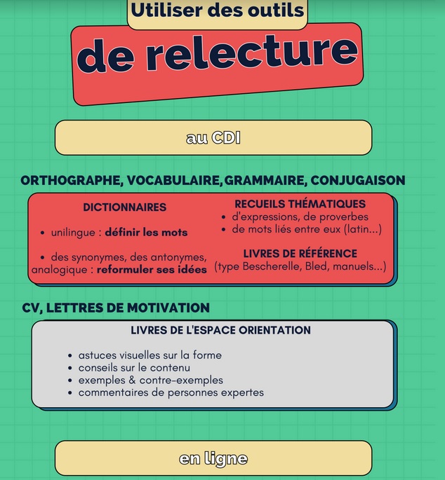 Pour cela, je me suis inspirée du travail d’une enseignante de lettres, Amandine : La Légèreté des Lettres (aussi sur Instagram) qui propose ses fiches d’aide à la relecture pour ses élèves, dans une panière sur leur table, avec notamment des rappels de conjugaison.
