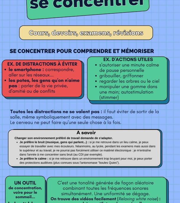Puis, je me suis retrouvée avec trois fiches à plastifier : 1 recto-verso et 1 recto… Une dernière fiche s’imposait donc ! J’ai choisi d’en mettre une sur la concentration pour travailler et se préparer pour l’oral. J’ai été bloquée sur un aspect donc j’ai demandé de l’aide à une prof doc, qui est sur Instagram : MdameLaProfDoc, que je remercie <3.